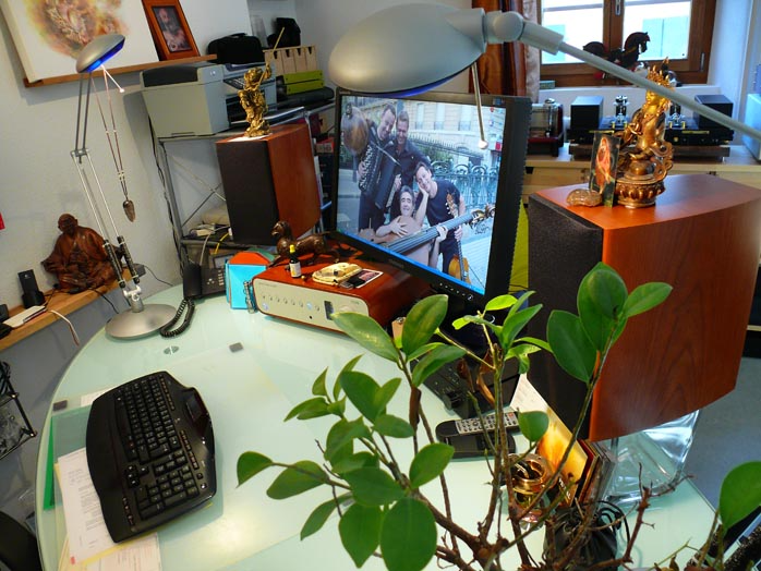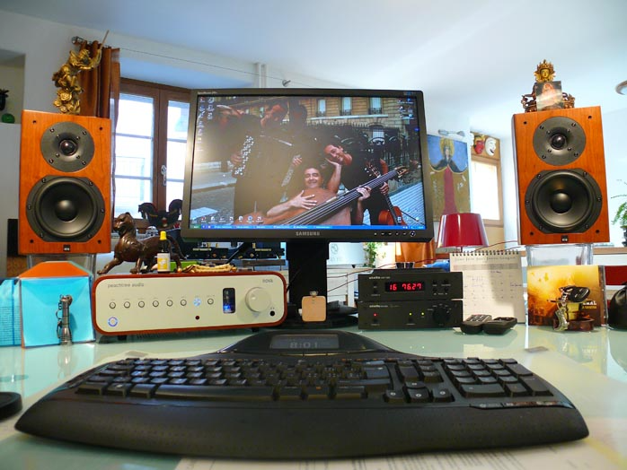 The review context was my desk top with its custom Windows XP PC or a big MacBook running XP Parallels. Stello's DA100 Signature DAC with USB input, Peachtree Audio's Nova or Glow Audio Amp One 2009 integrateds and the Era Design Sat 5 speakers plus Glow Audio Sub One represented the hifi hardware. Direct comparators for D/A conversion thus were the April Music and Peachtree Audio Nova units on the upper end and the USB DAC built into the Glow Audio EL84 amplifier on the lower. To assess headphone drive, I used B&O's stylish 19-ohm clip-on earspeakers and a full-size pair of Beyerdynamic DT880 with convertible mini plug.