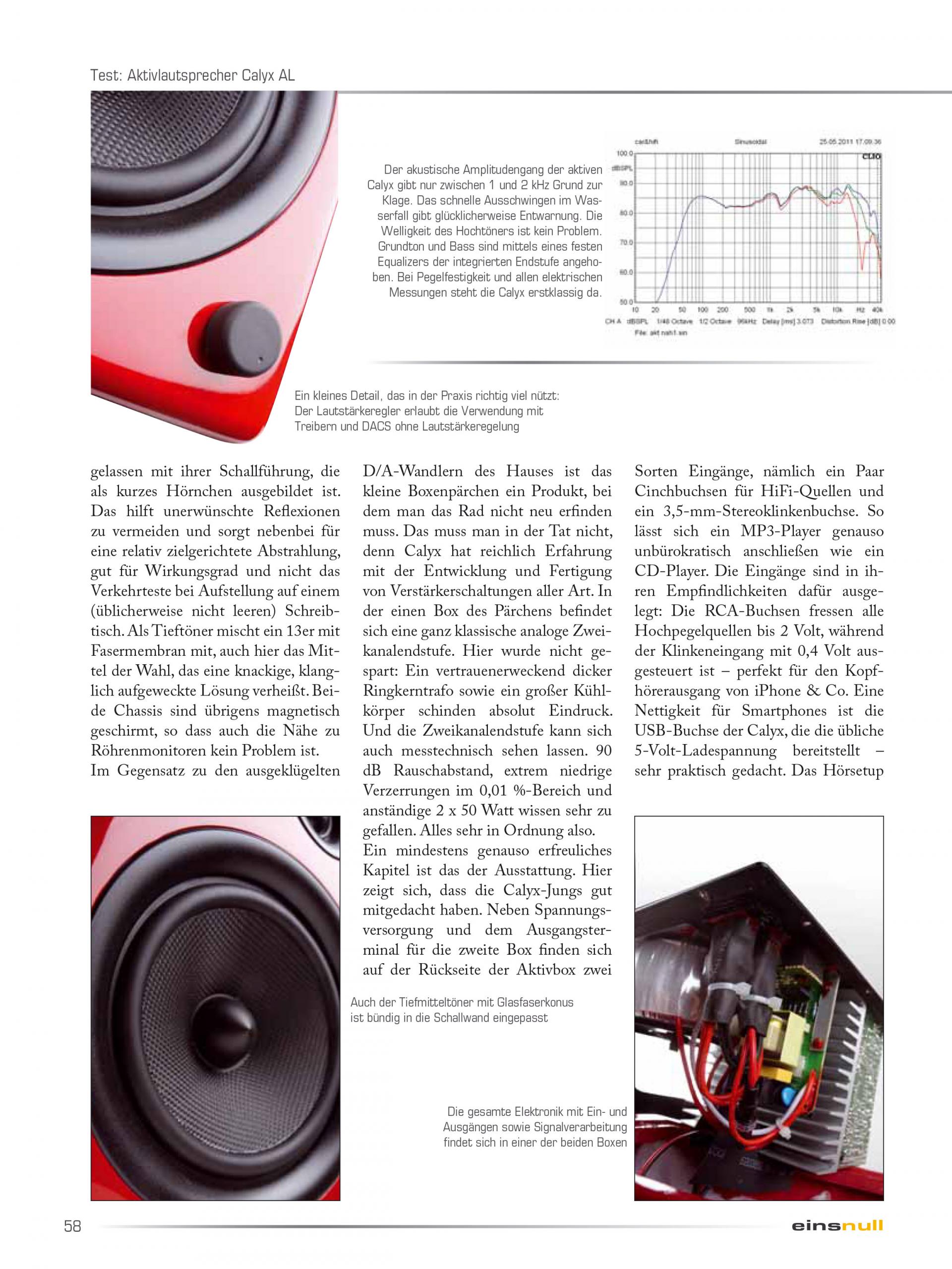 Genau dies ist jedoch kürzlich dennoch geschehen, so dass wir in den Genuss einiger erlesener Elektronik kommen. Der DAC 192/24 dürfte regelmäßigen Lesern noch aus dem Heft 1/2011 in Erinnerung sein. Und es begab sich, dass beim Essener Vertrieb Higoto ein schnuckliges Pärchen feuerroter Aktivlautsprecher auf seine Entdeckung wartete, das ebenfalls der Name Calyx zierte.